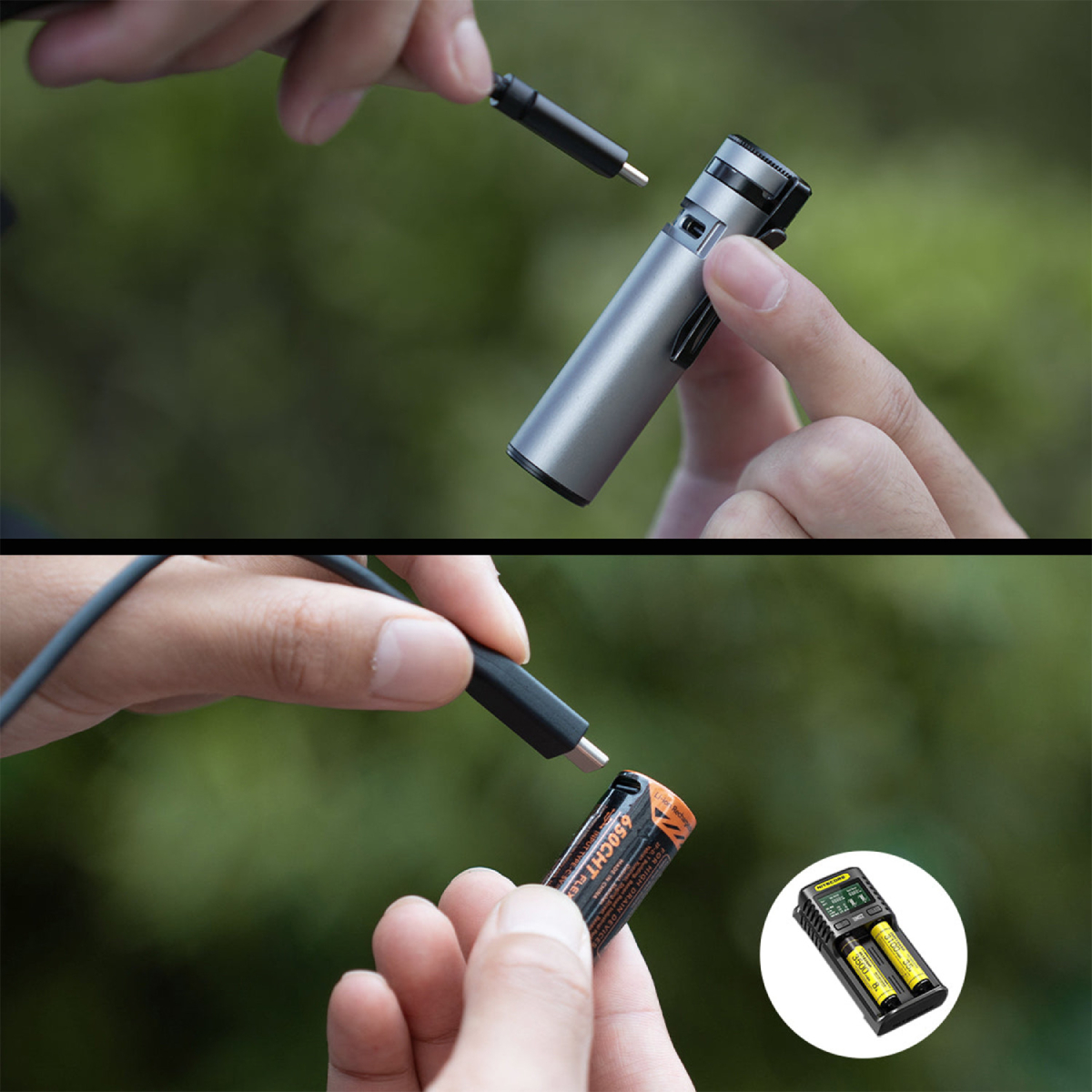 Корпус изготовлен из алюминиевого сплава, защищён от ударов и влаги. Угол рассеивания луча — 120°, питание — съёмный аккумулятор Zero Battery (650 или 950 мАч), зарядка через Type-C.