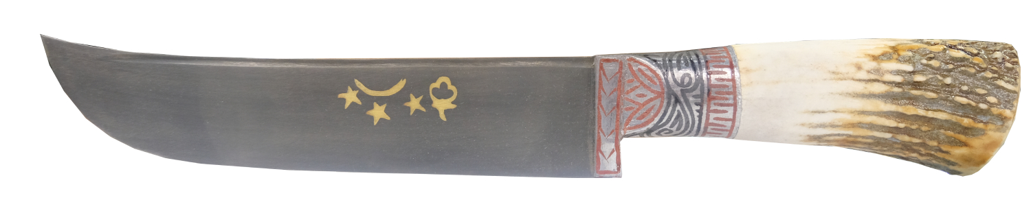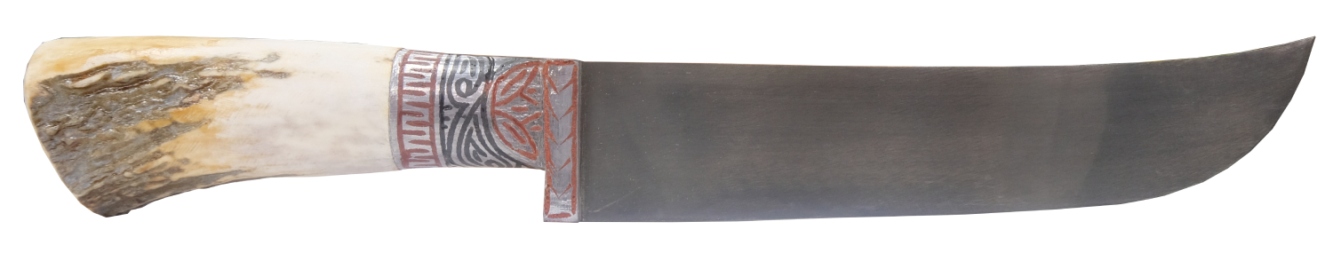 Рукоять выполнена из рога, что придает ножу не только элегантный и уникальный вид, но и обеспечивает превосходный комфорт в использовании. Роговая рукоять отличается прочностью и удобным хватом, а также устойчива к воздействию влаги, что обеспечивает долговечность и надежность ножа.