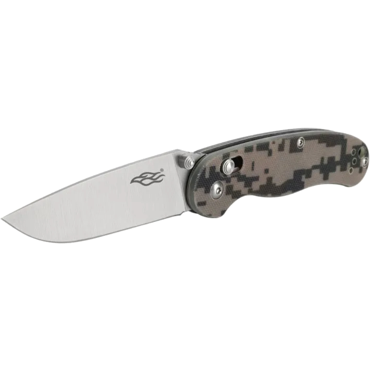 Надёжный замок Axis Lock фиксирует клинок в обоих положениях. Нож дополнен прочной клипсой из закалённой стали и доступен в расцветках: чёрный, серый и камуфляж. Firebird FB727S-CA — надёжный и практичный инструмент для любых активностей вне дома.