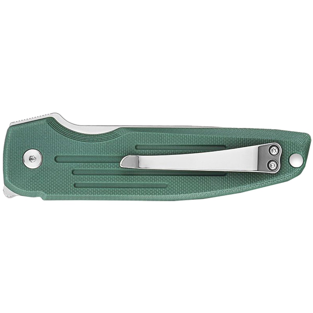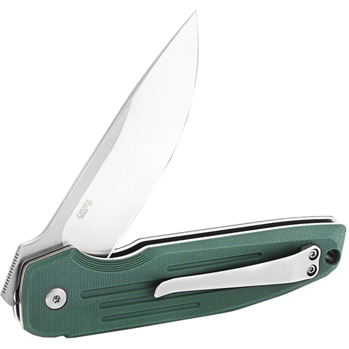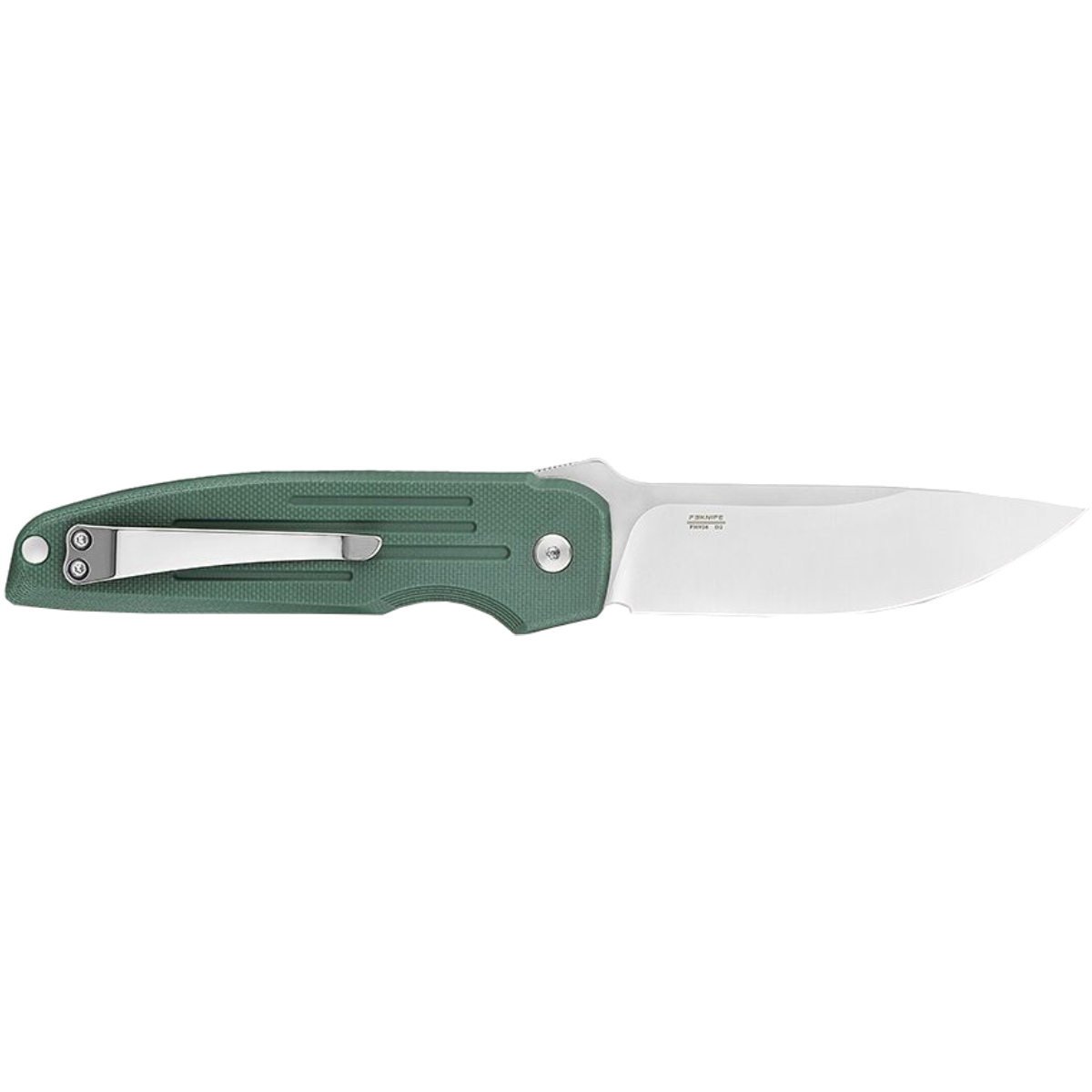 Клинок изготовлен из прочной полунержавеющей стали D2 (твёрдость \~60 HRC), устойчивой к износу и коррозии. Сталь хорошо держит заточку и рассчитана на долгий срок службы. Эргономичная рукоятка из G10 устойчива к влаге, ударам и перепадам температуры, не впитывает запахи и гарантирует надёжный хват даже в перчатках.