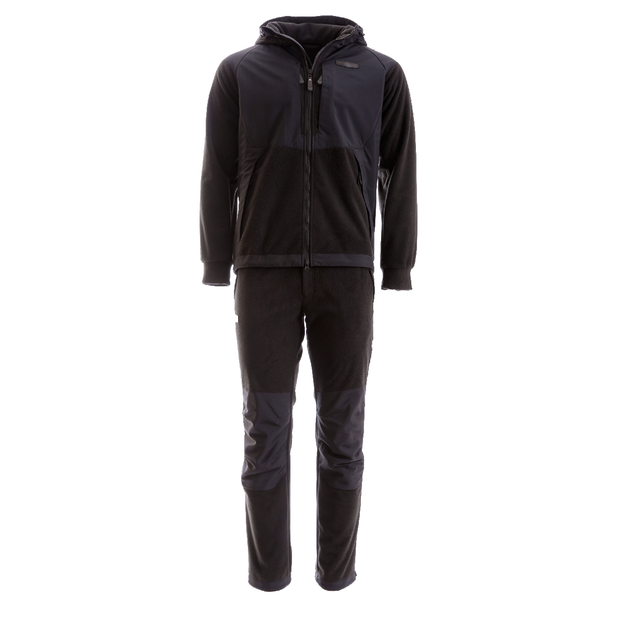 Материал – Polar Fleece 2S плотностью 330 г/м² с антипилинговой обработкой, предотвращающей появление катышков. Мембрана расположена между слоями флиса для дополнительной защиты. Костюм оснащен молниями, регулируемым капюшоном и утяжкой по низу куртки.