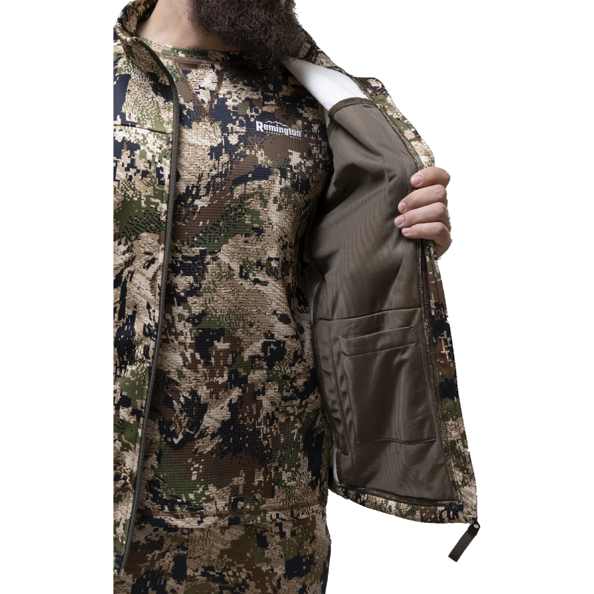Верхний слой материала защищает от ветра, а внутренняя подкладка из мягкого микрофлиса эффективно удерживает тепло. Манжеты на резинке, кулиска по низу и высокий воротник-стойка обеспечивают плотное прилегание и защиту от холода.