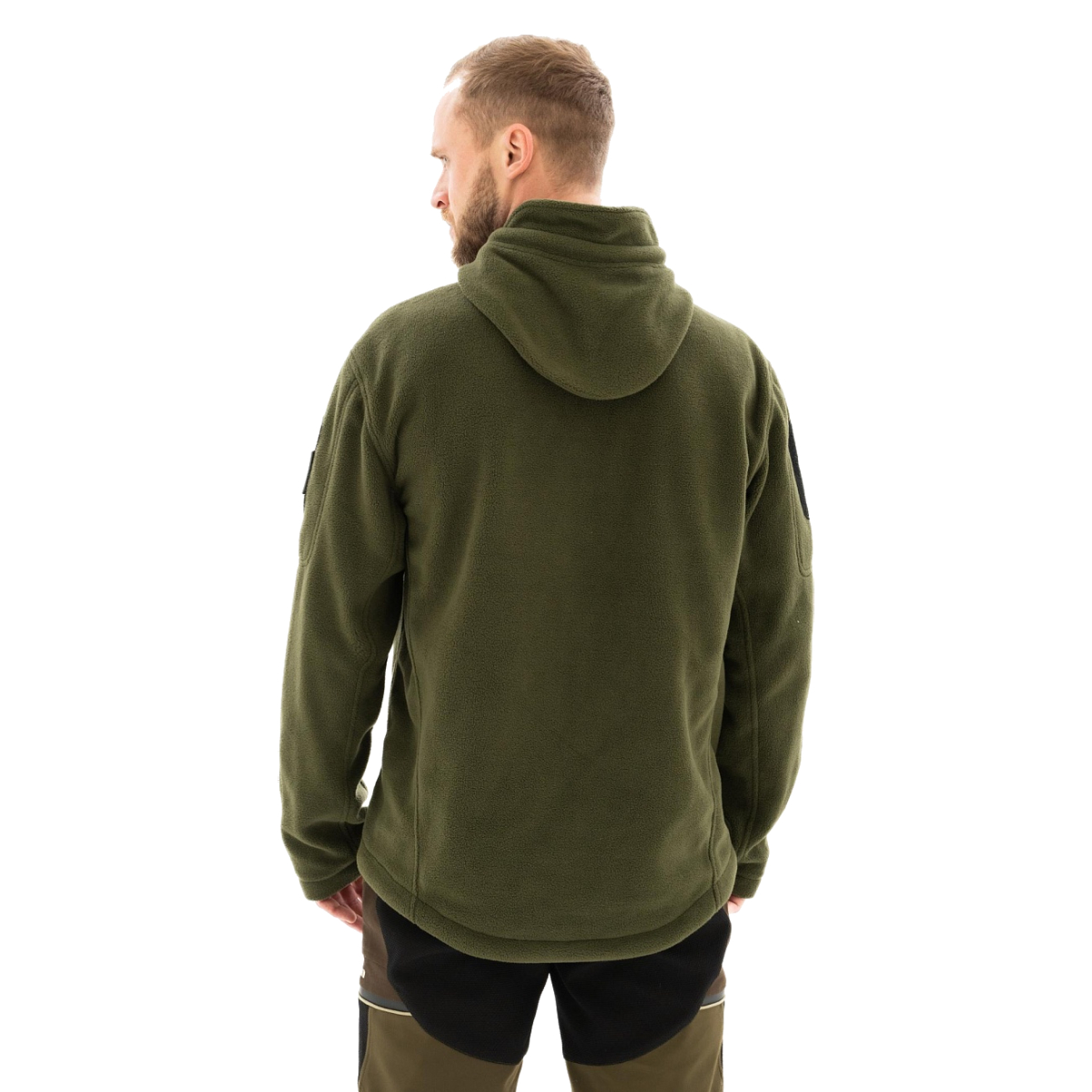 Для защиты от ветра толстовка оснащена несъемным капюшоном с козырьком, а по низу изделия предусмотрена регулировка с помощью кулисы для лучшего сохранения тепла. Пять карманов позволяют удобно разместить все необходимые личные вещи, а в боковых карманах можно согреть руки.