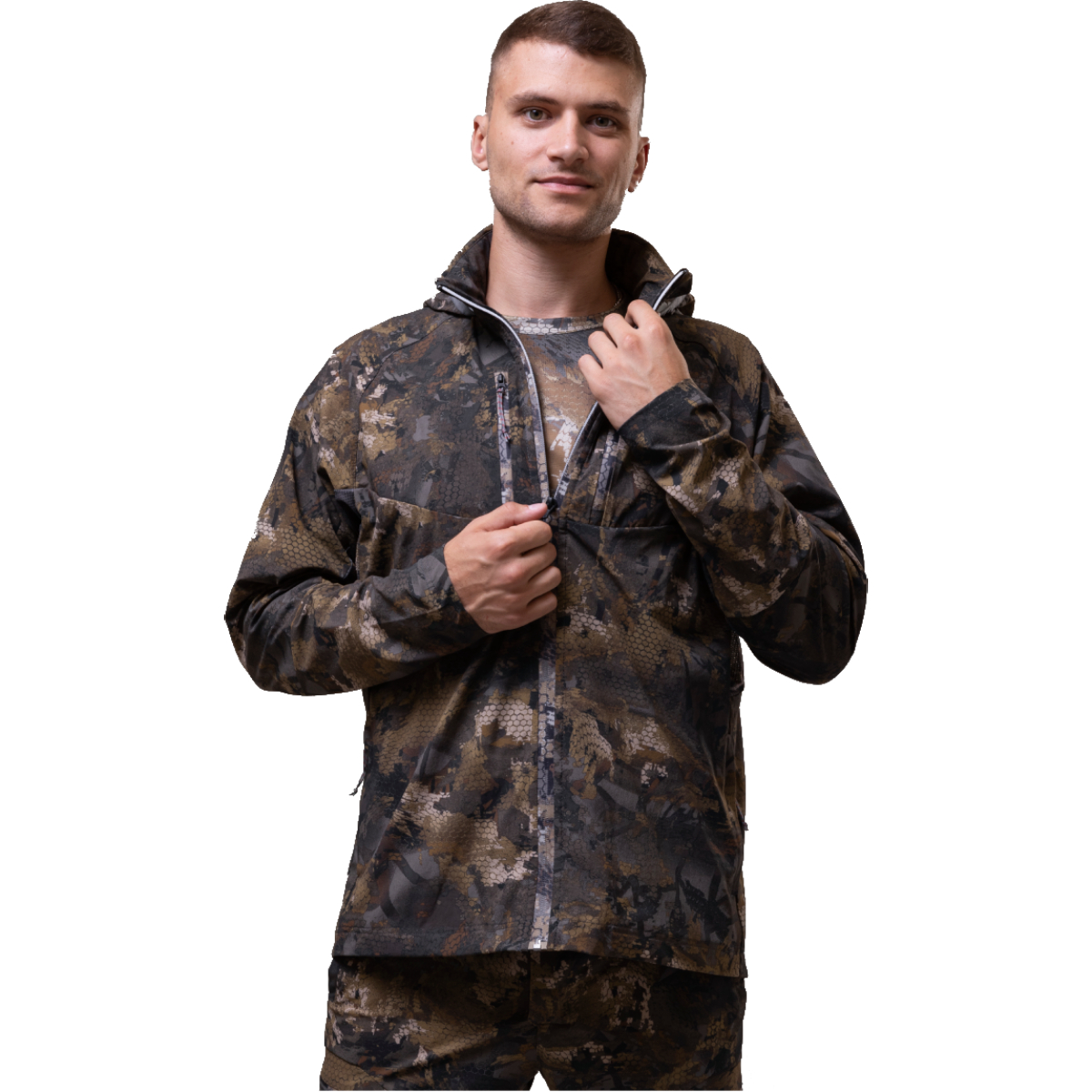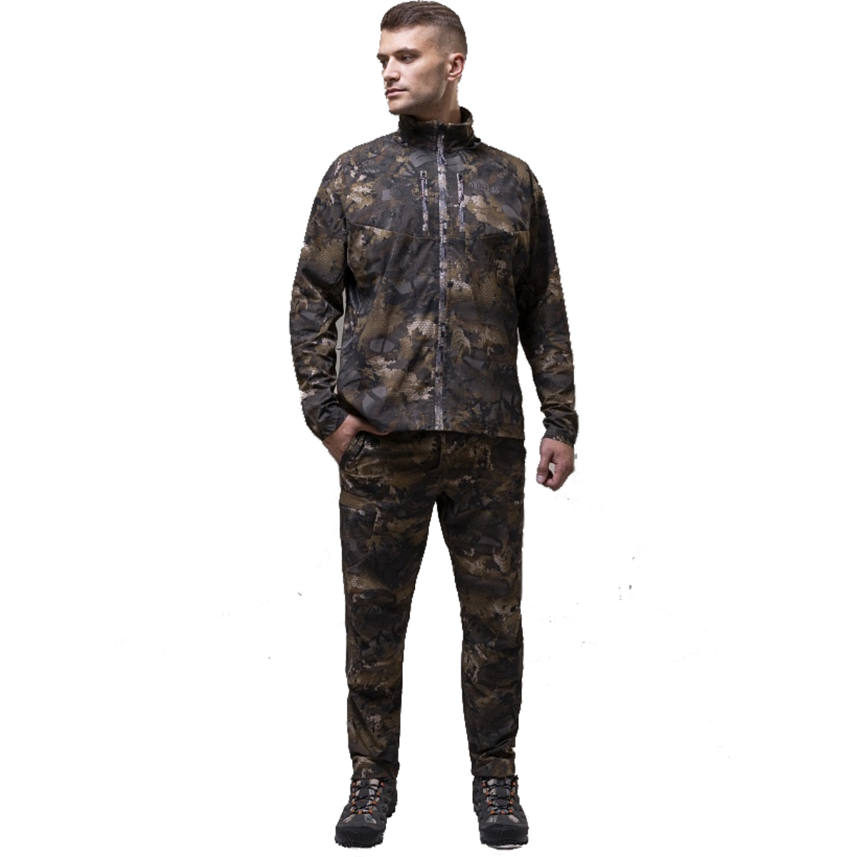 Костюм оснащён несколькими удобными карманами для хранения личных вещей. Разработан с участием охотников и рыболовов, модель учитывает все практические потребности и отлично подходит для использования в лесной среде.