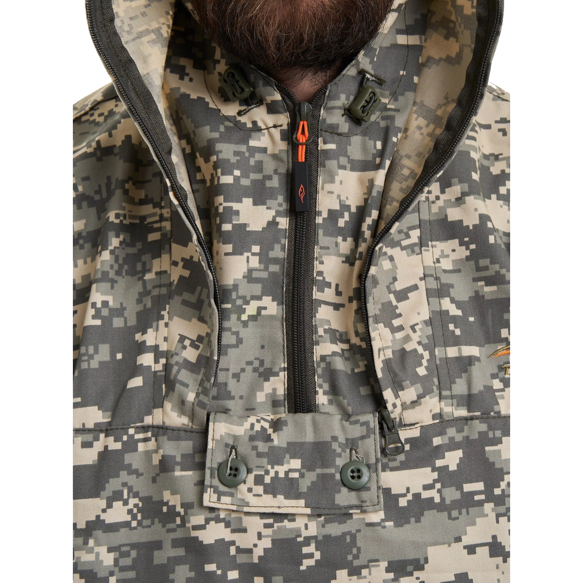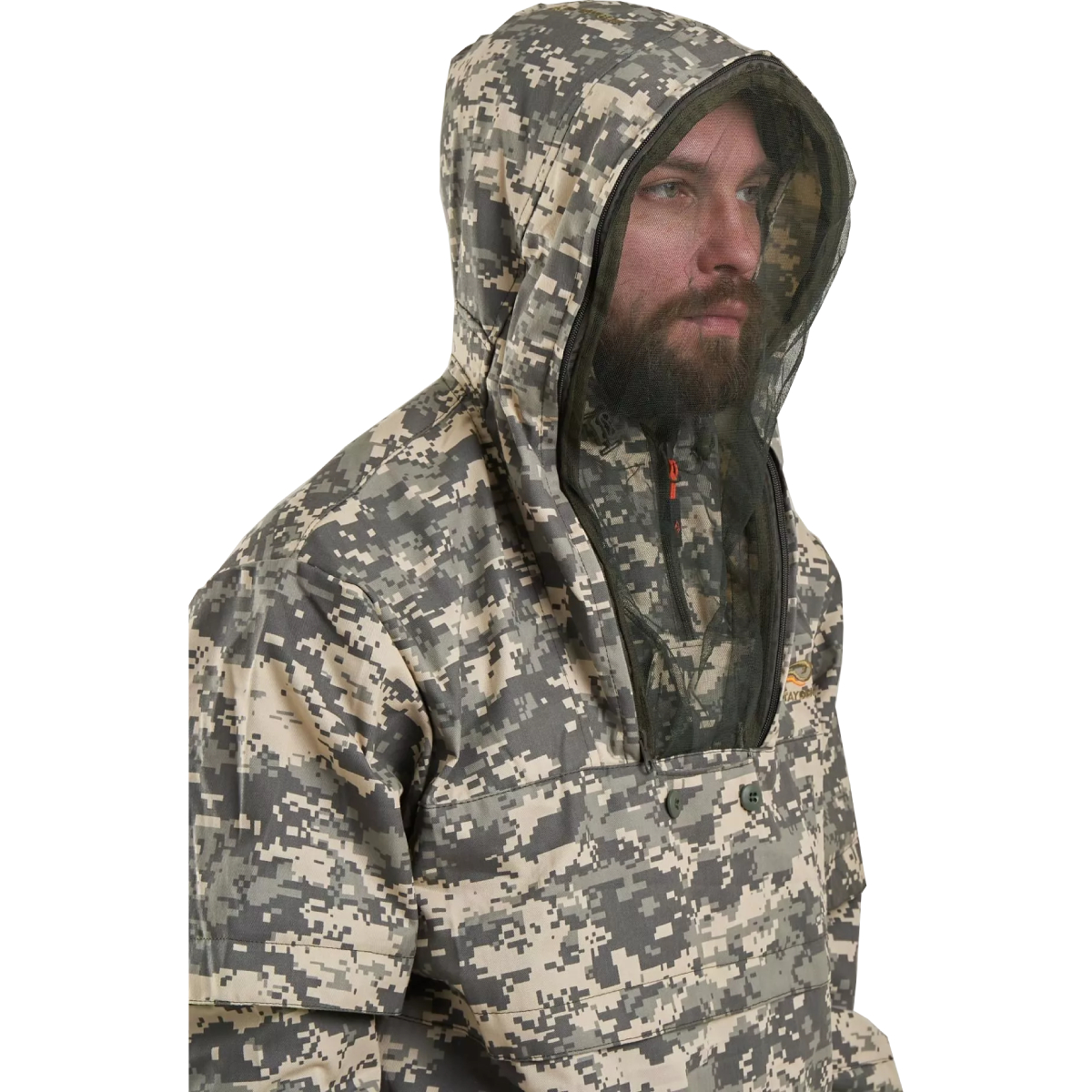 Для полной защиты куртка снабжена внутренней юбкой, заправляемой в брюки, а плотные манжеты предотвращают проникновение насекомых. Вместительный центральный карман куртки-анорака удобен для хранения необходимых мелочей.