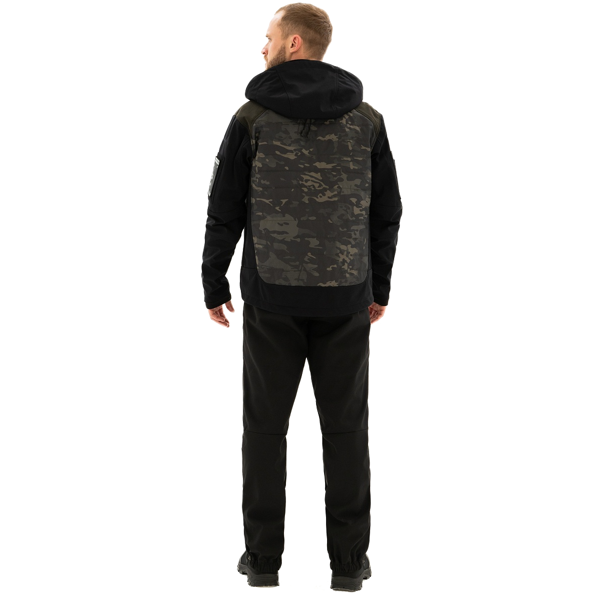 Костюм имеет пять карманов на куртке и два на брюках с молниями. Пояс брюк фиксируется резинкой и ремнем. Анатомический крой колена обеспечивает комфорт при движении, а штанину можно отрегулировать для удобного прилегания к обуви.