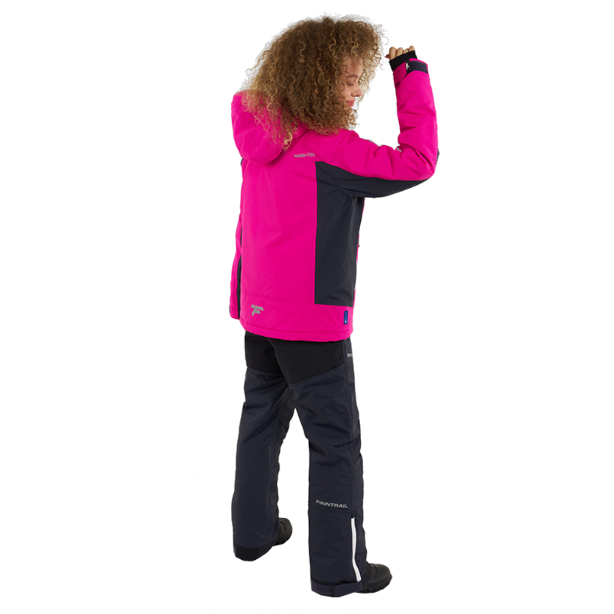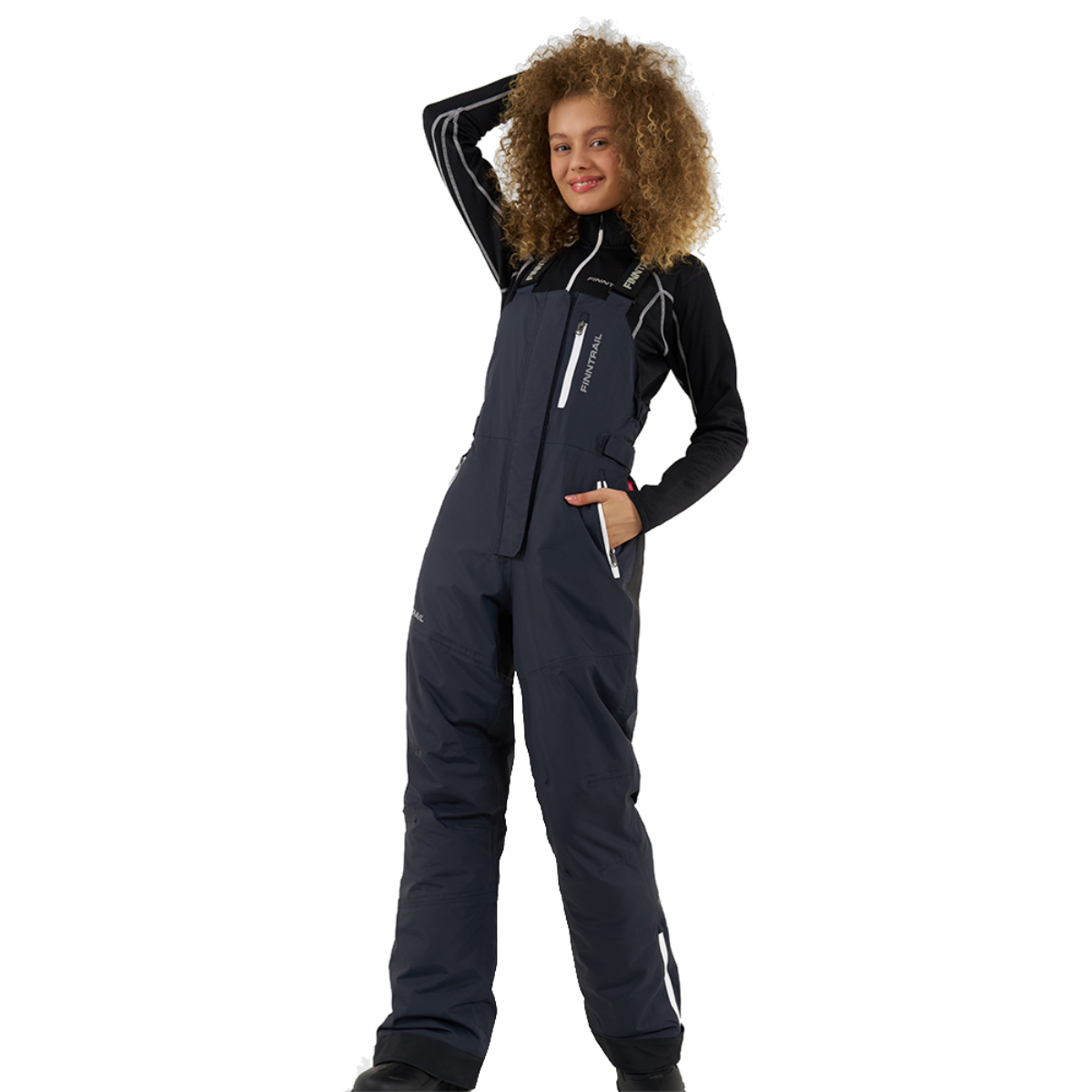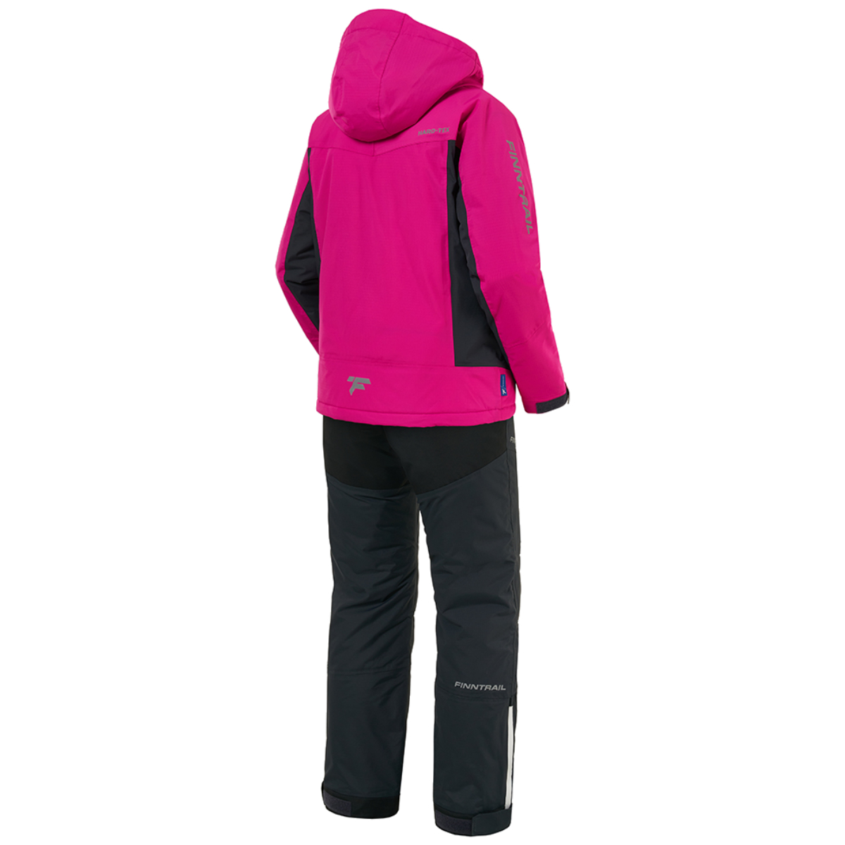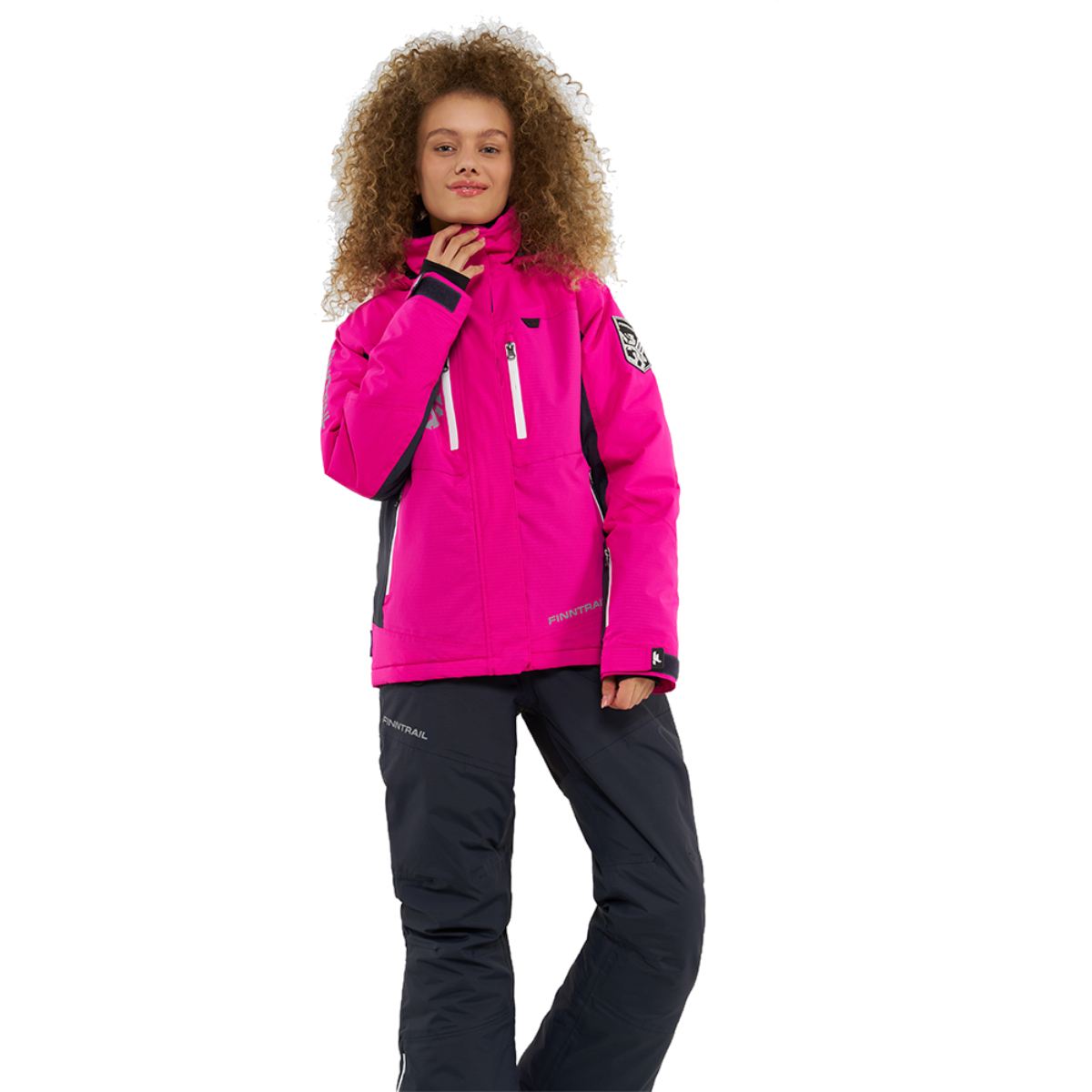 Куртка оснащена центральной двухзамковой молнией с защитной планкой, четырьмя влагозащитными карманами и капюшоном, регулируемым в двух плоскостях. Полукомбинезон имеет усиления в области седалища, эргономичный крой коленей и интегрированные снегозащитные гетры, что обеспечивает отличную свободу движений и защищает от снега и ветра.