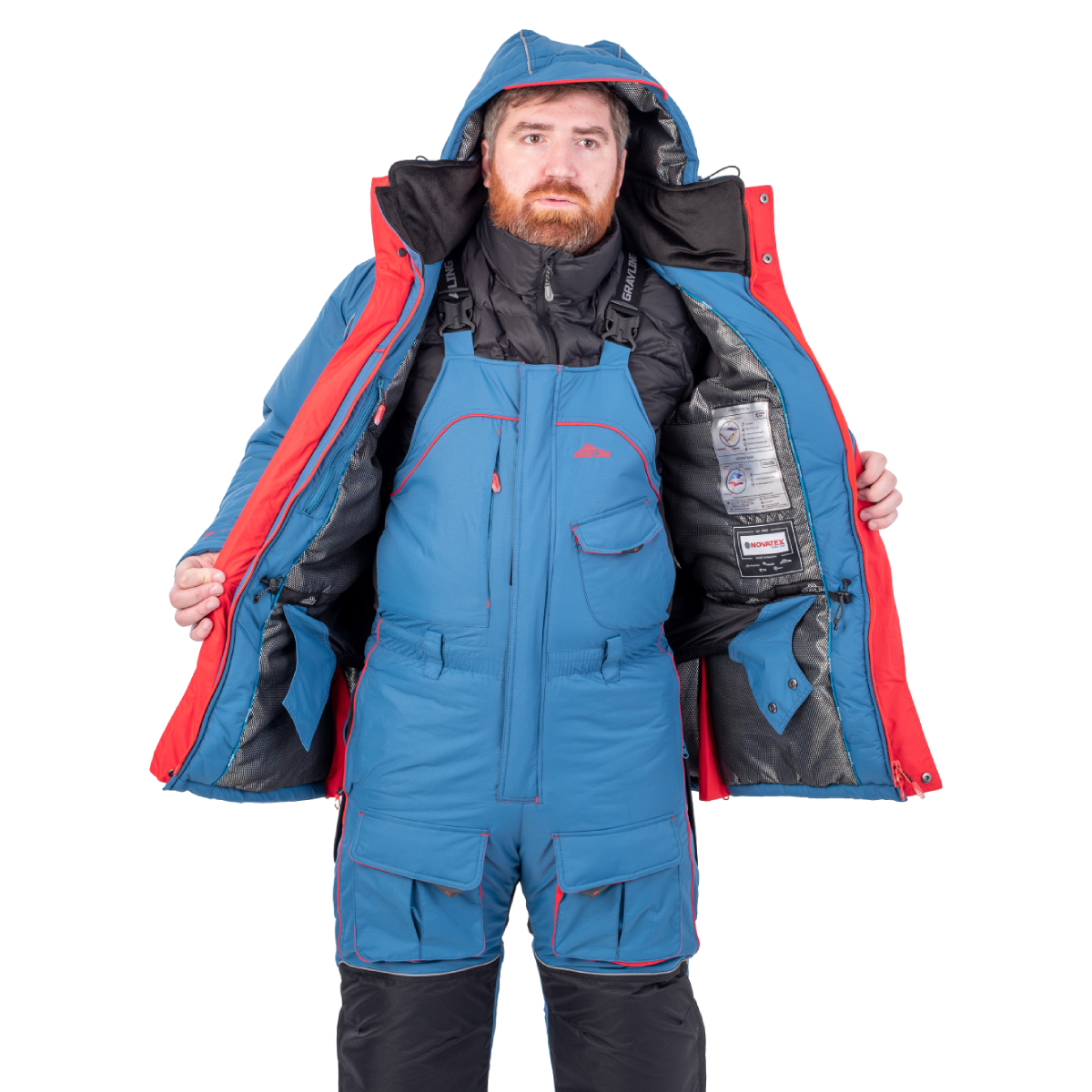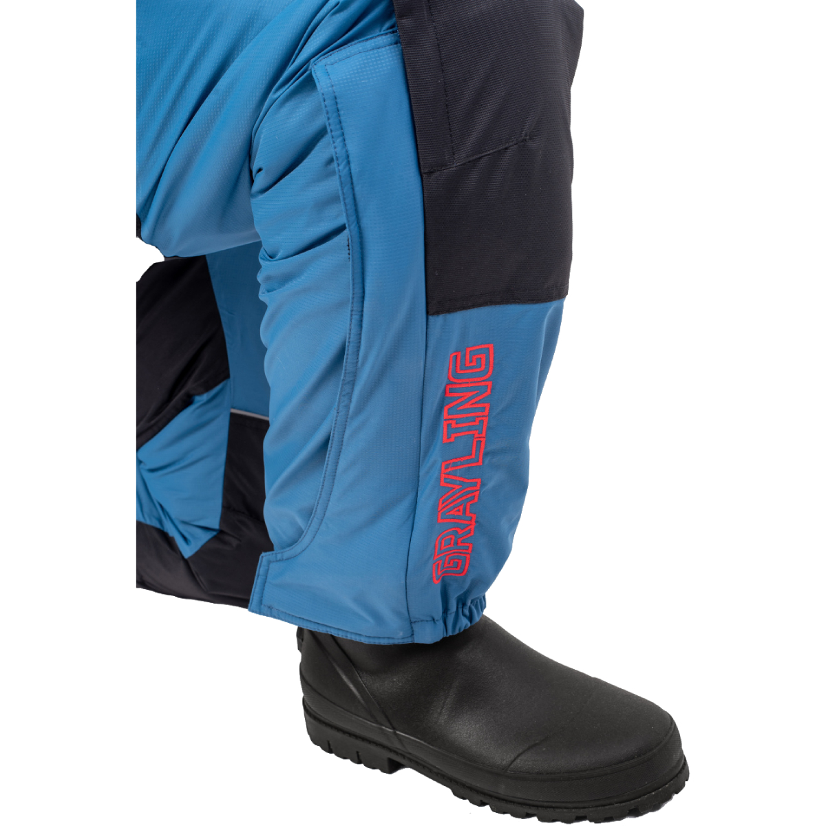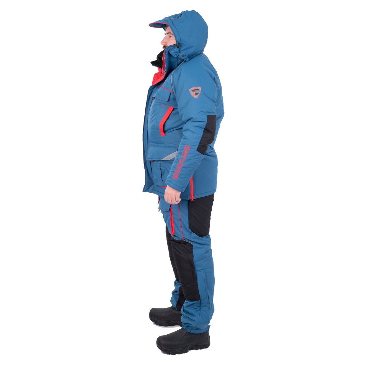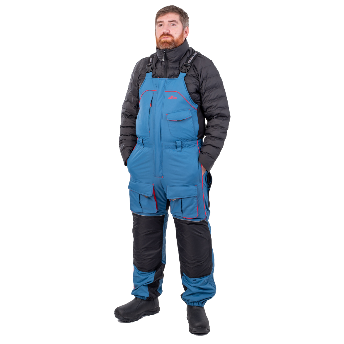 Брюки оснащены регулируемыми лямками для комфортной посадки и эластичными манжетами внизу, обеспечивающими плотное прилегание к обуви. Этот костюм — оптимальный выбор для активной зимней рыбалки, благодаря функциональности и долговечности.