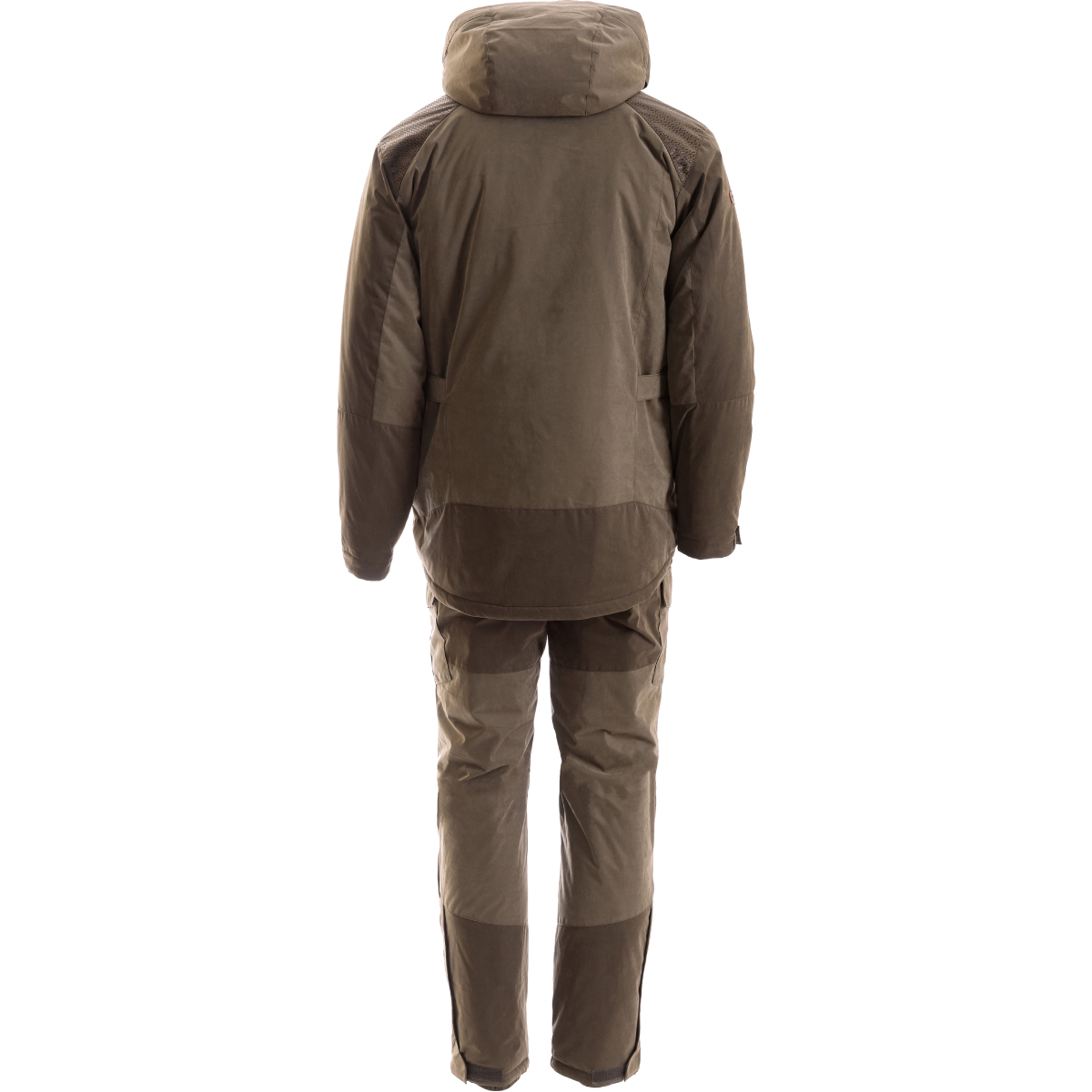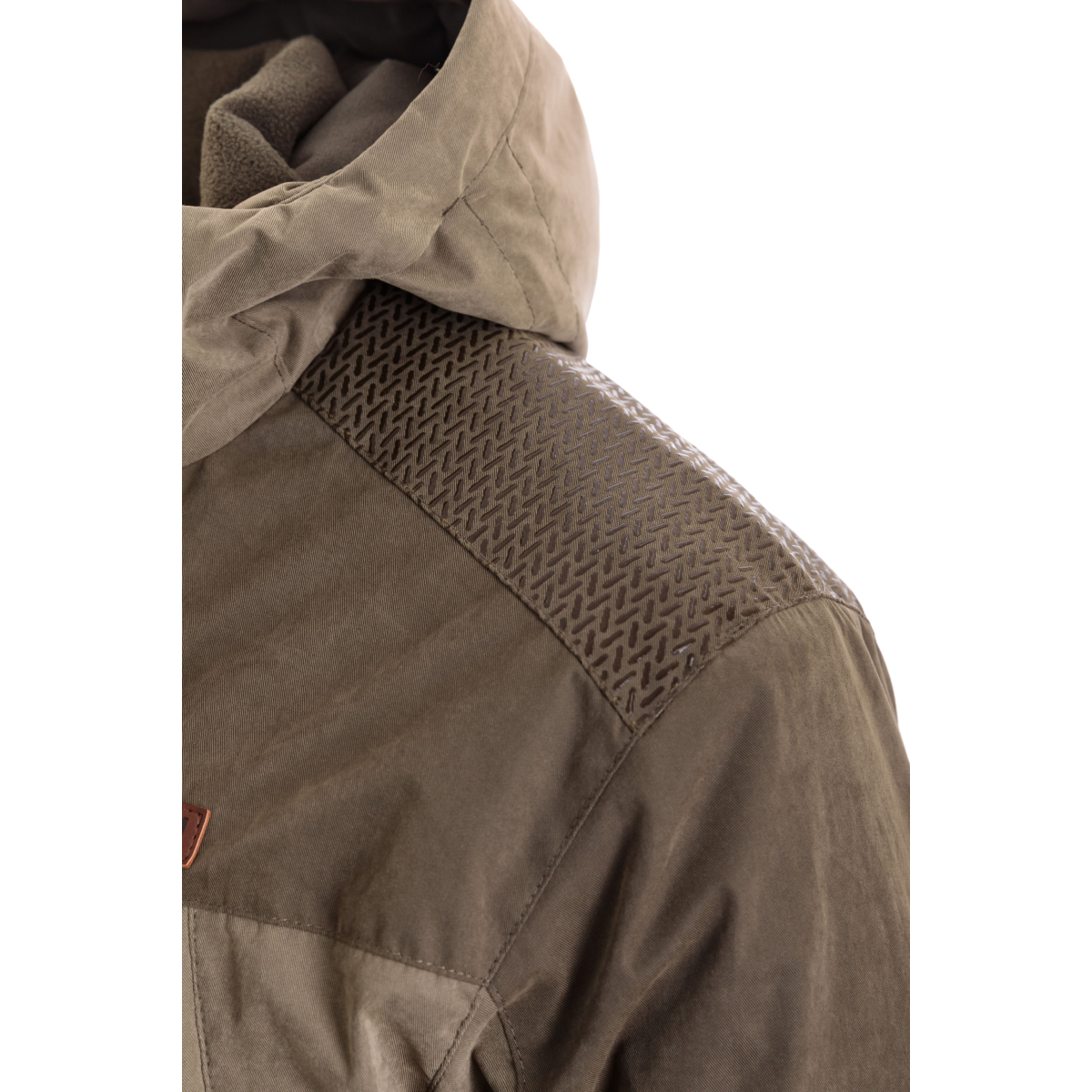 На плечах добавлены вставки с силиконовым покрытием для надежной фиксации ружейного ремня. Это решение исключает лишние швы, сохраняя герметичность. Флисовый подворотник защищает шею от ветра, а обновленная форма карманов на куртке улучшает доступ к содержимому. Современный утеплитель WARMSET гарантирует высокую теплоизоляцию даже в суровых условиях.