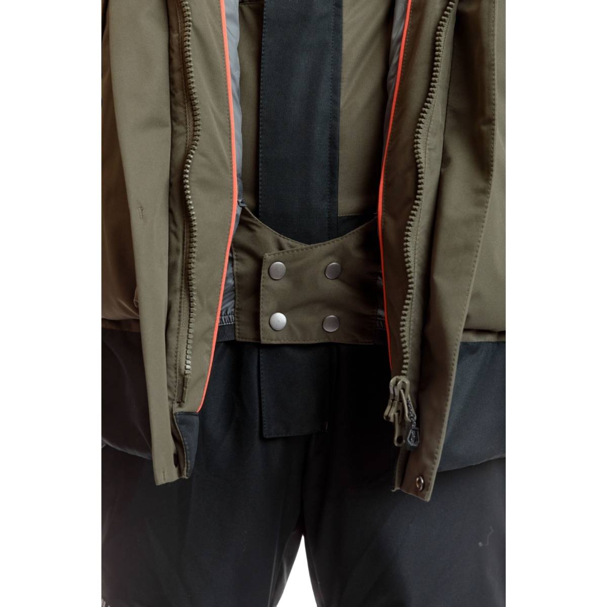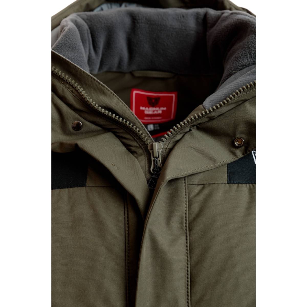 Куртка снабжена молнией с двойным ветрозащитным клапаном, регулируемым капюшоном, флисовым воротником и удобными карманами. Ветрозащитная юбка усиливает защиту от холода.