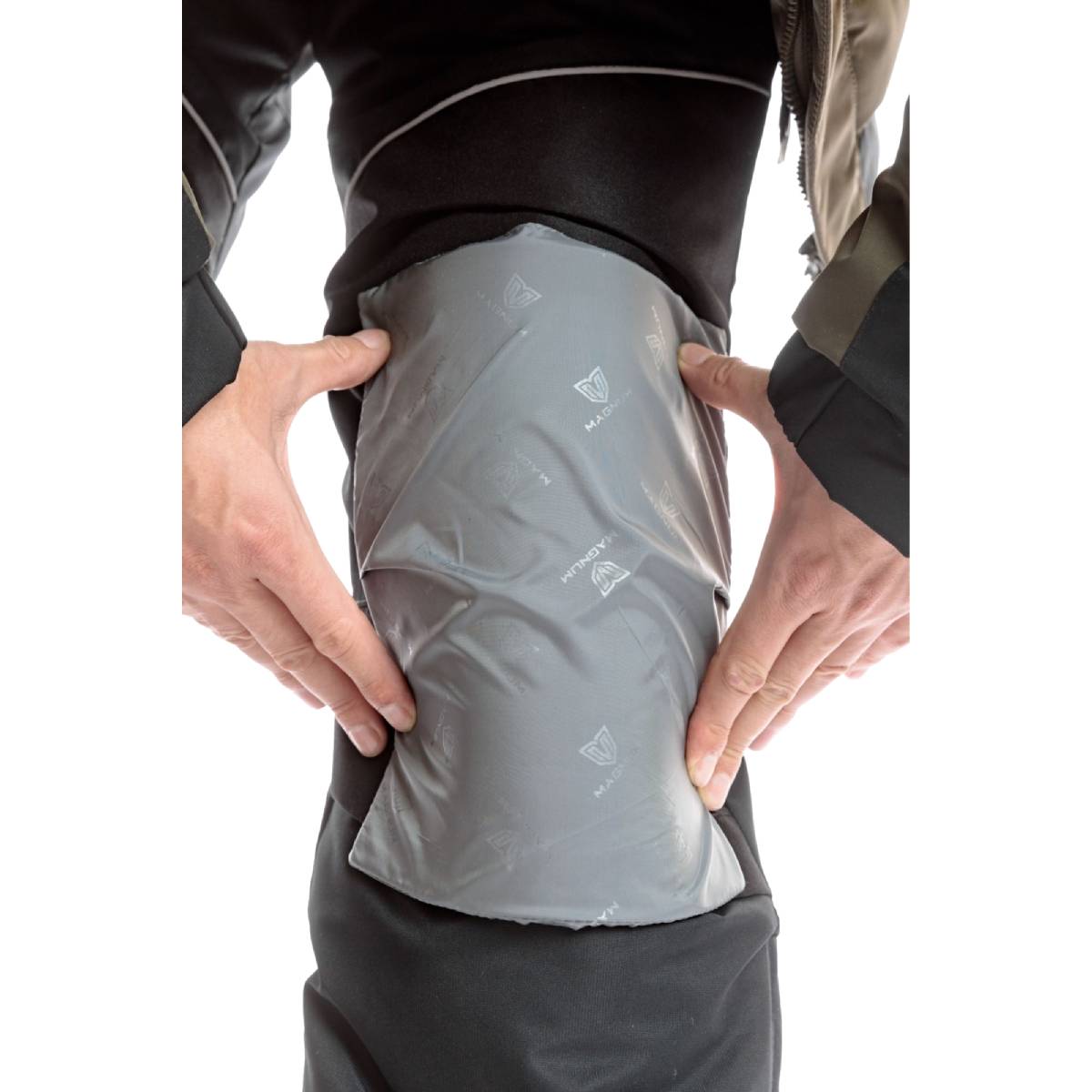 Полукомбинезон оснащен боковыми эластичными вставками, регулируемым поясом и боковой раздвижкой по низу. Внутренние влагозащитные манжеты и съемные вкладыши для колен обеспечивают комфорт. Дополнительные D-Ring для аксессуаров и светоотражающие элементы повышают удобство и безопасность.