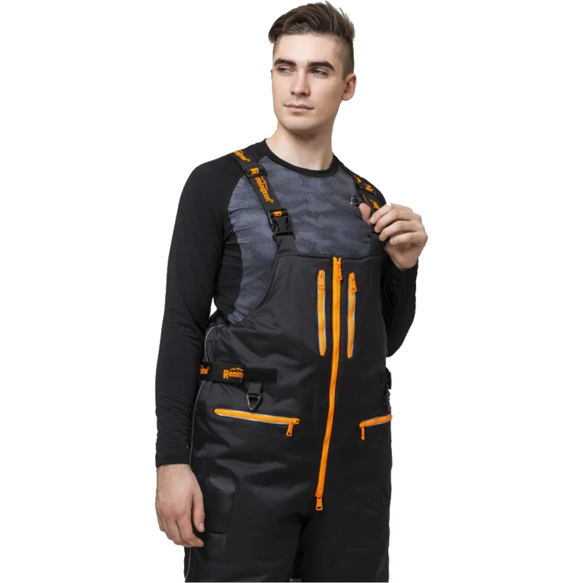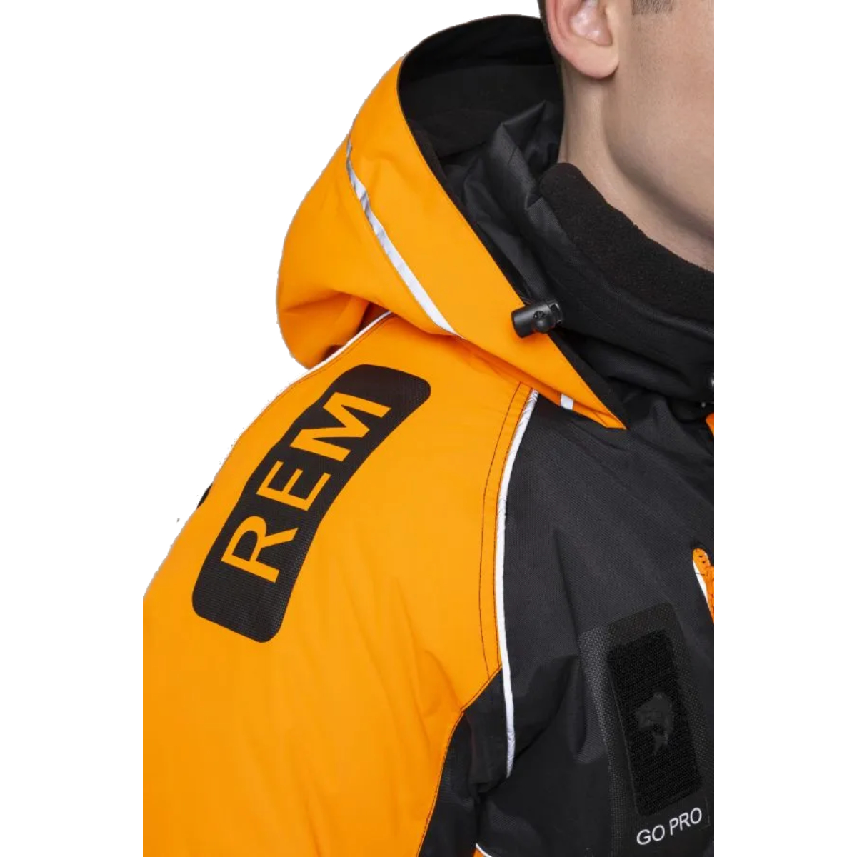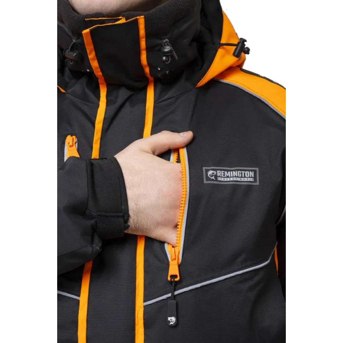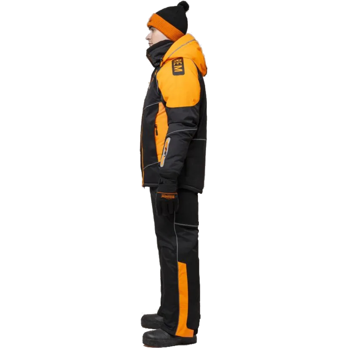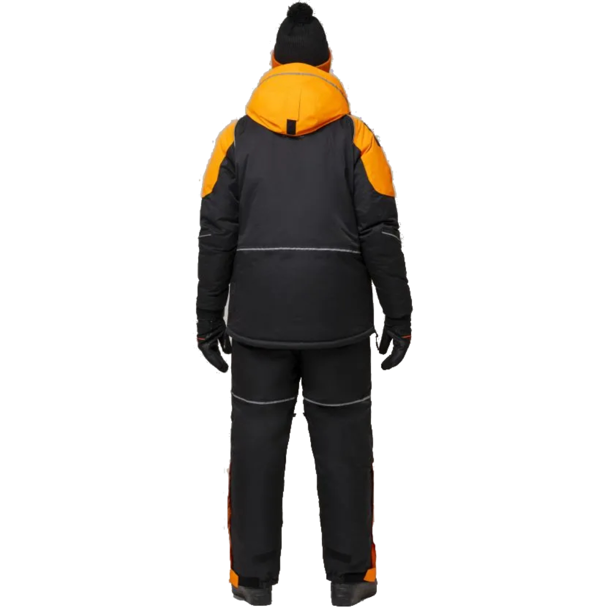 Куртка оснащена регулируемым капюшоном, высоким штормовым воротником, снегозащитной юбкой и манжетами. В конструкции предусмотрено 11 карманов, крепления для снастей и камеры GoPro, а также светоотражающие элементы для безопасности. Костюм выполнен в чёрном цвете — стильном, практичном и универсальном.