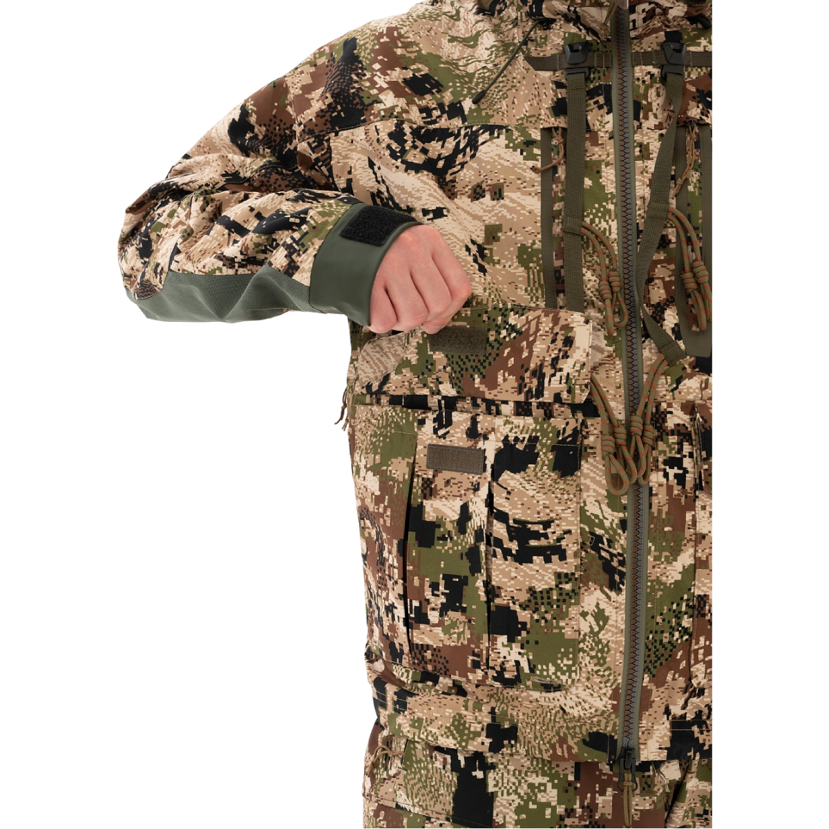 Двухзамковая молния с внутренней ветрозащитной планкой позволяет расстегивать куртку как сверху, так и снизу, обеспечивая легкий доступ к нижним слоям одежды. Регулируемый капюшон, утяжка по низу и манжеты на липучках помогают сохранить тепло. Вентиляционные отверстия подмышками способствуют отводу излишнего тепла, обеспечивая комфорт при активности.
