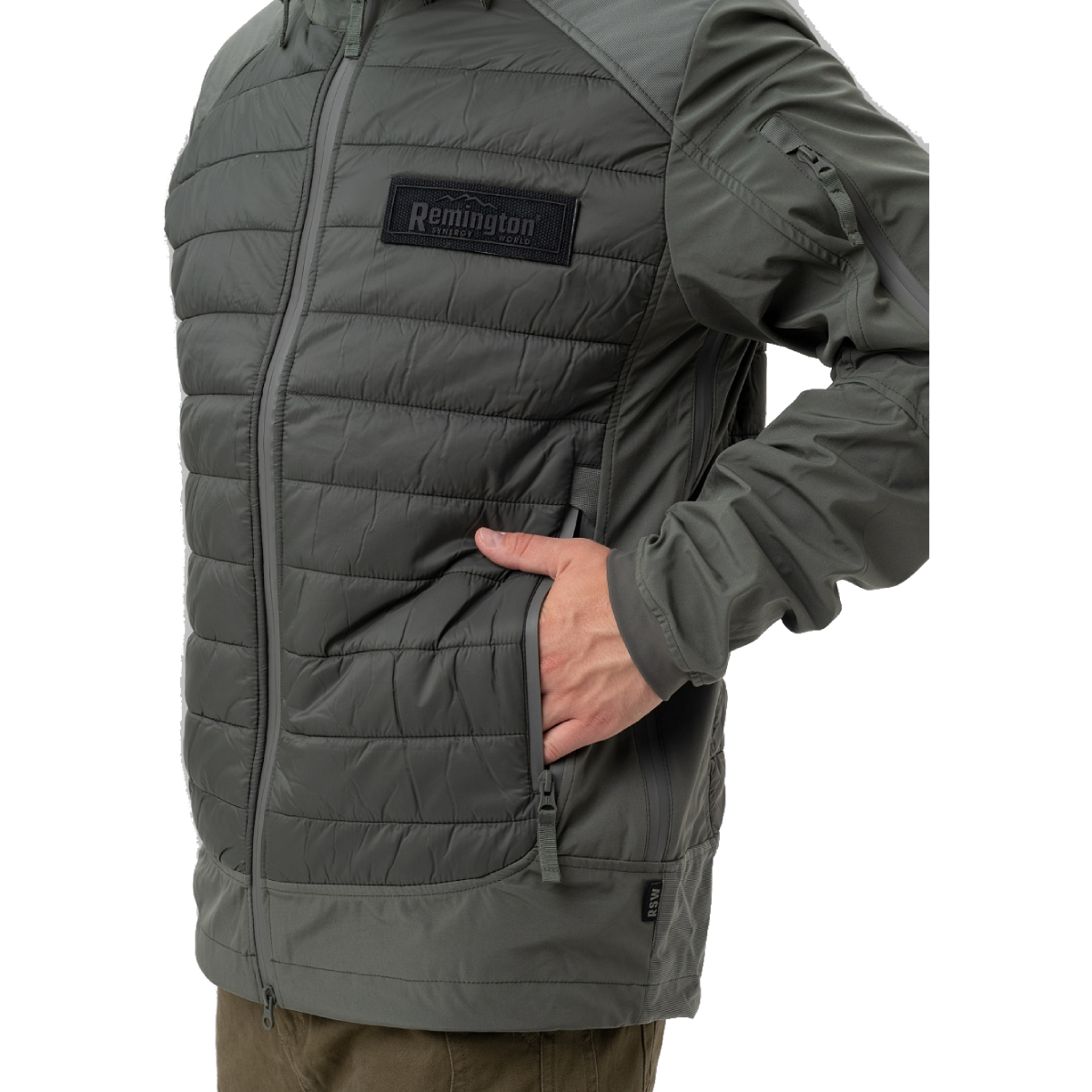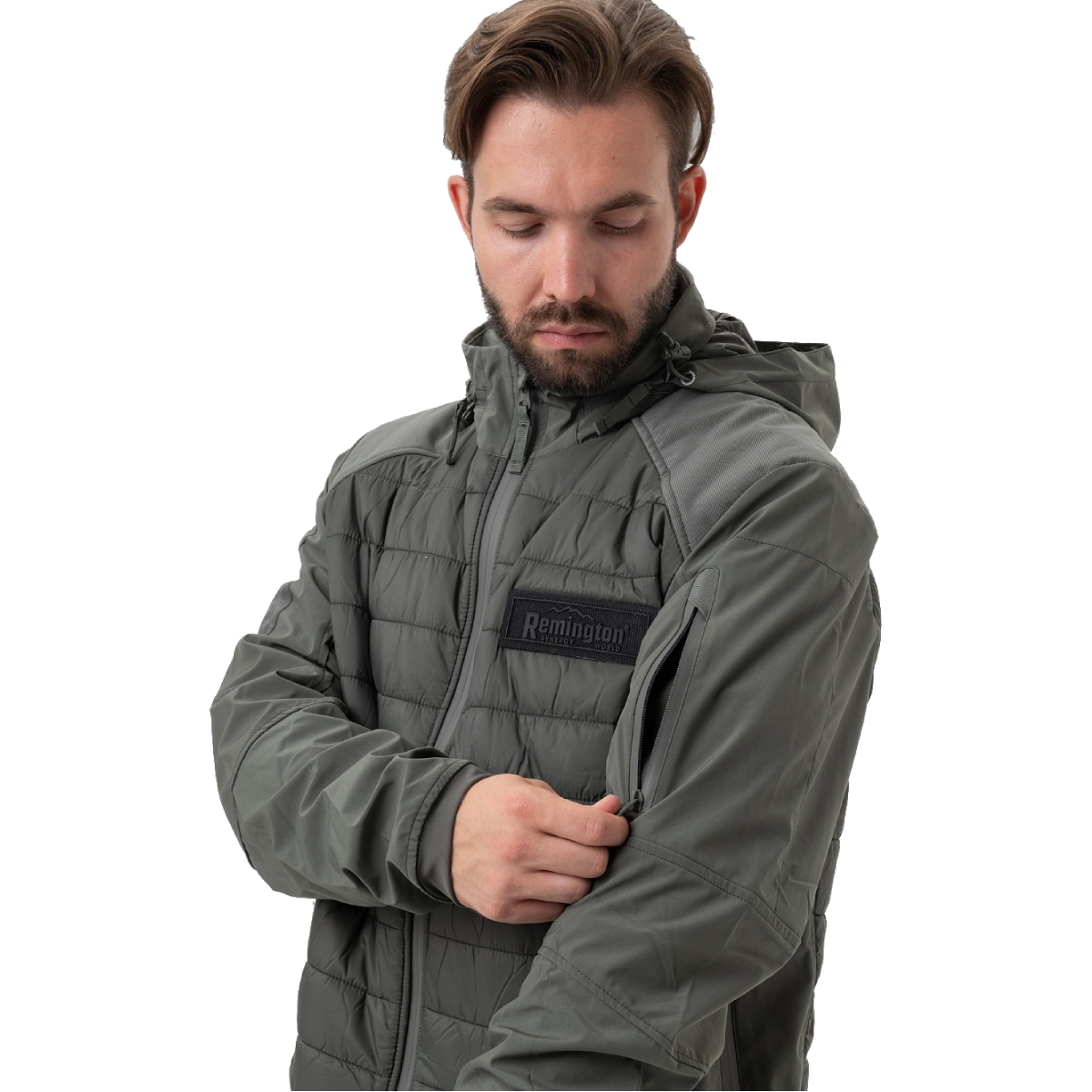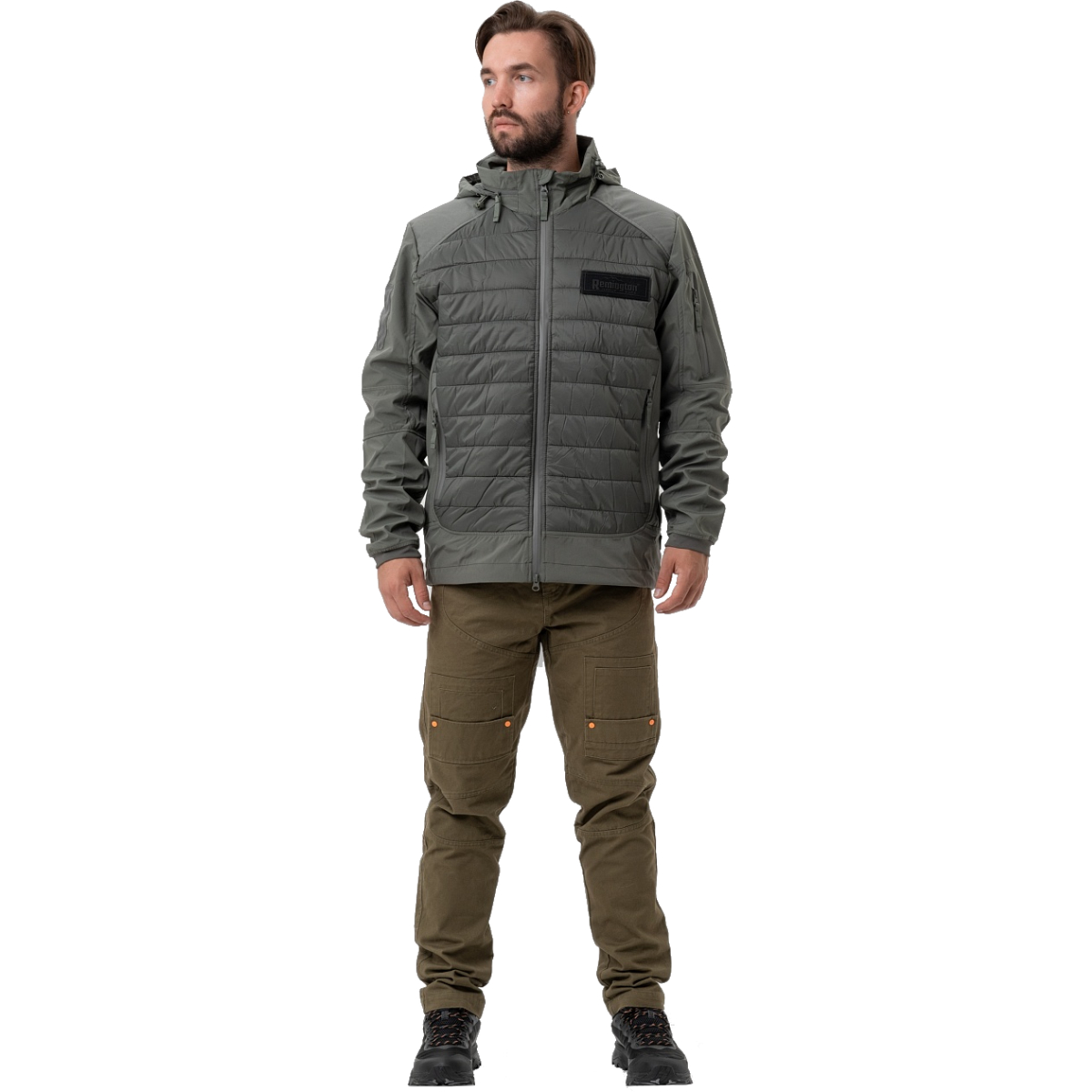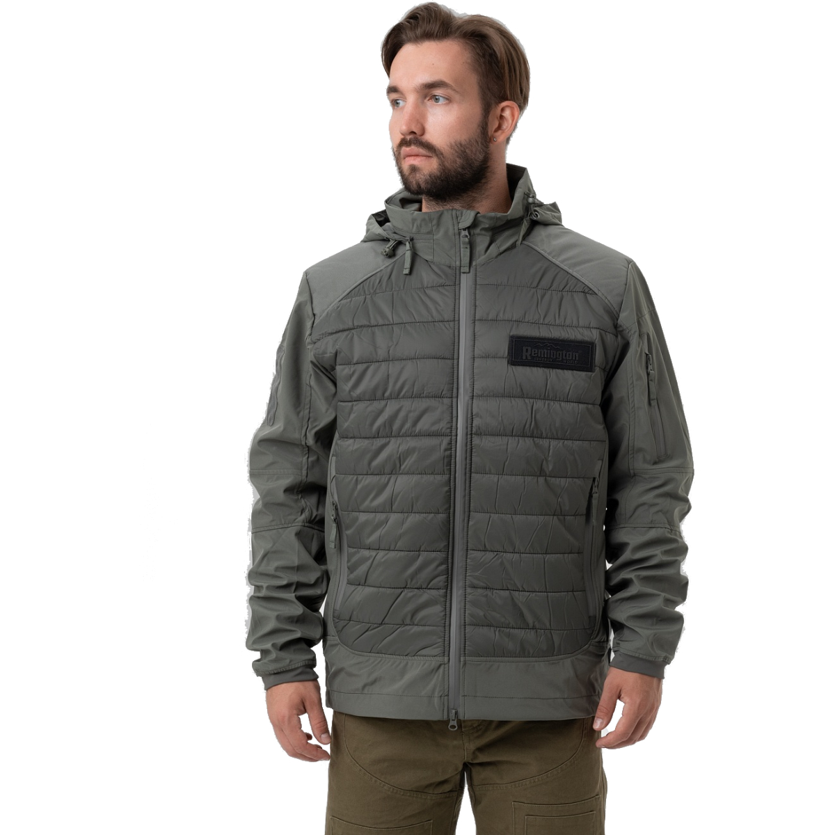 Модель декорирована лаконичной фирменной нашивкой Remington на груди. Куртка может использоваться как самостоятельный элемент или как утепляющий слой.