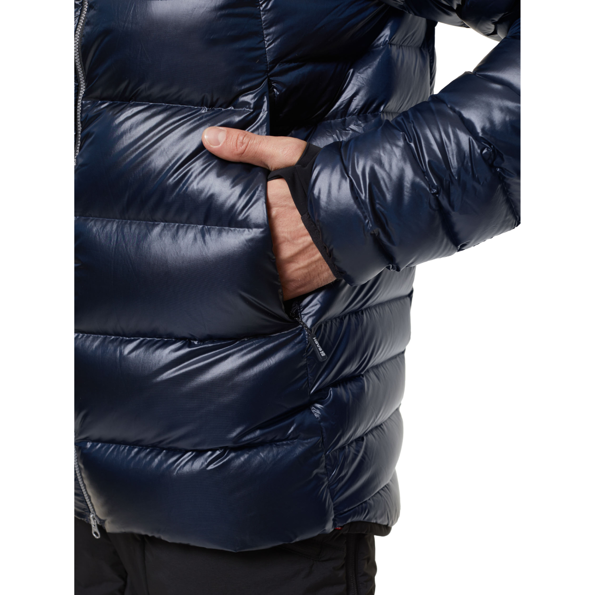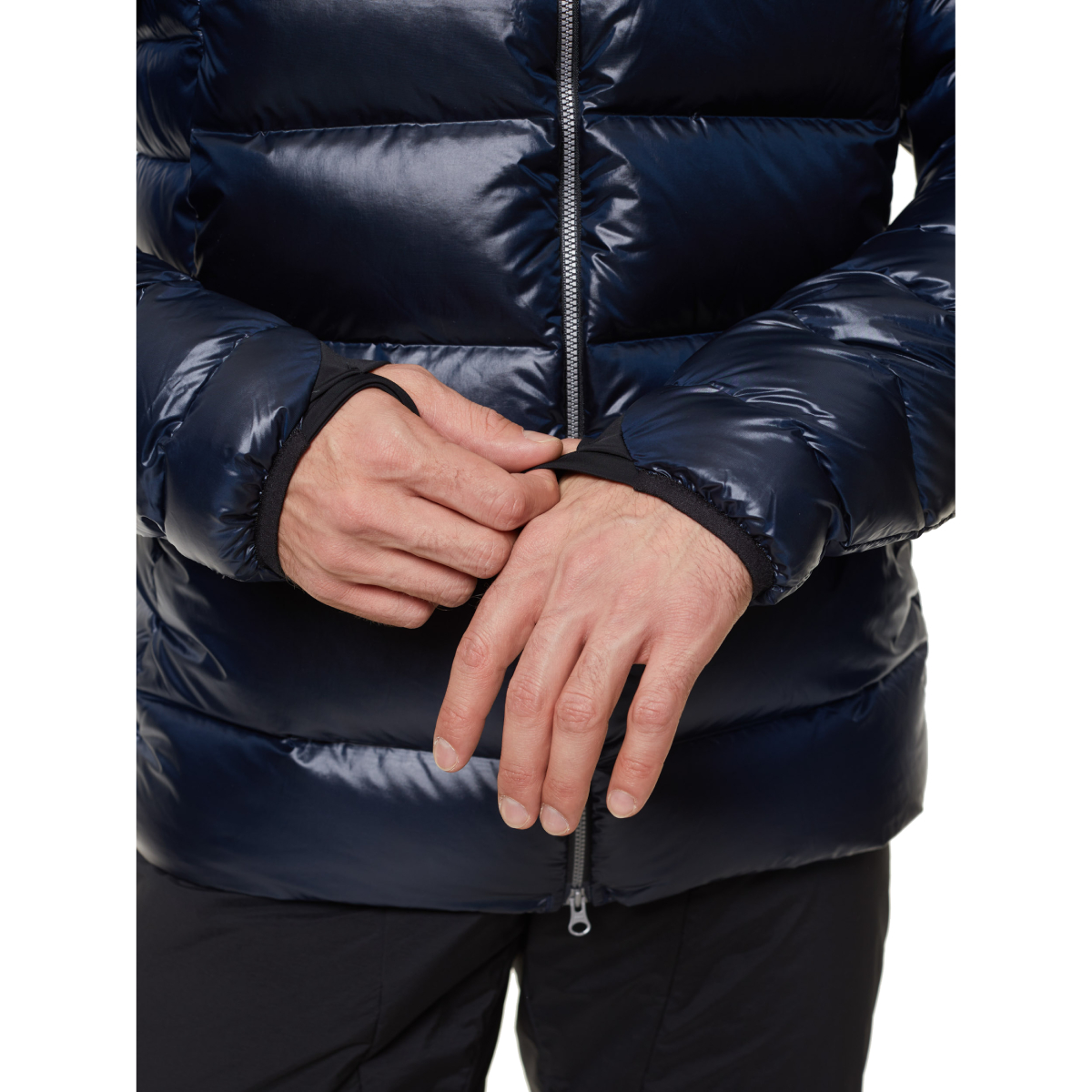 Эргономичный крой и артикулированные рукава реглан с эластичными манжетами обеспечивают свободу движений и комфорт при активных занятиях. Объёмный тёплый капюшон с ламинированным козырьком можно надевать поверх каски, а регулировки по объёму головы и контуру лица гарантируют защиту от ветра. Внутренняя зона капюшона обшита мягким трикотажем для дополнительного комфорта.