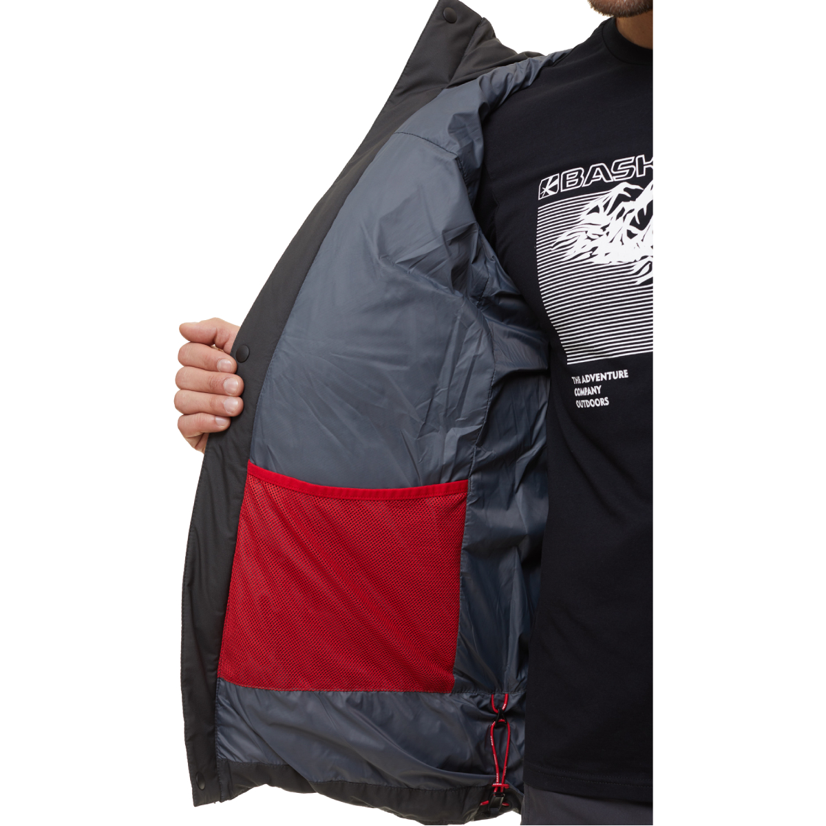 На куртке предусмотрены два боковых тёплых кармана, нагрудный карман на молнии, объёмный внутренний карман из сетки и ещё один карман на молнии. Эластичная регулировка по низу и удлинённая спинка добавляют защиту от ветра и холода.