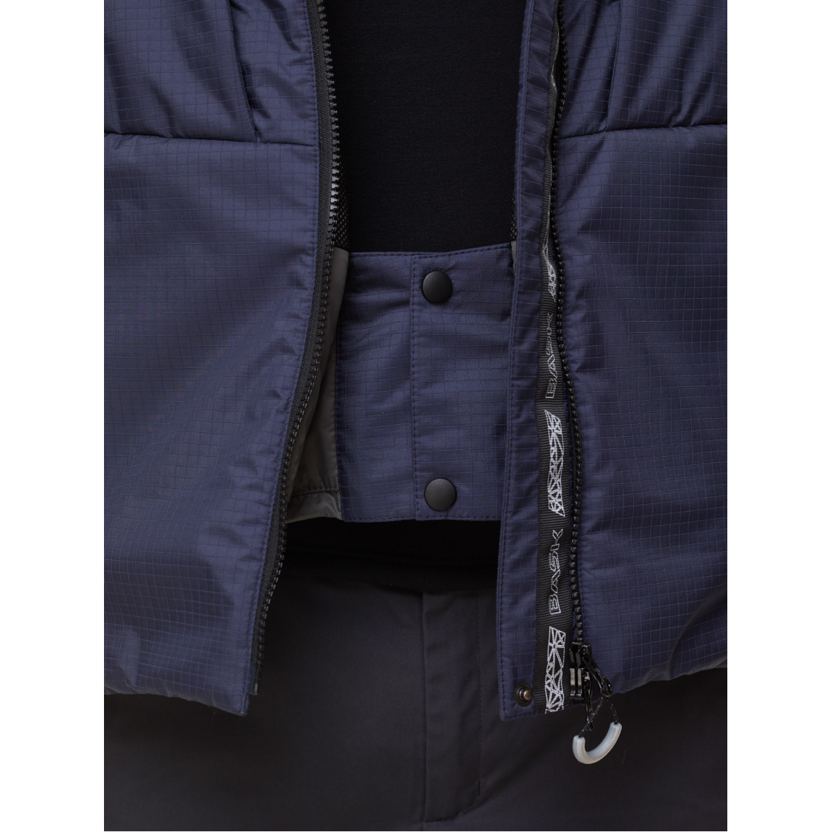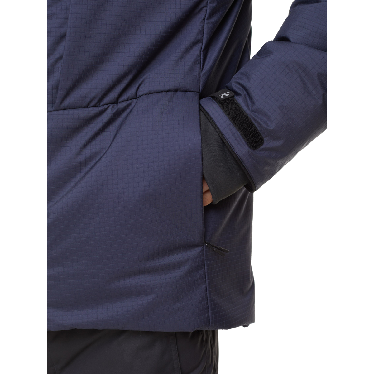Куртка оснащена объёмным капюшоном с высокой стойкой и эластичными регулировками, который можно надевать поверх каски или тёплой шапки. Центральная молния с двумя замками позволяет расстёгивать куртку сверху и снизу, а регулируемые манжеты на липучке Velcro® и внутренние эластичные манжеты из Advance® T Stretch с отверстием для большого пальца помогают удерживать тепло.