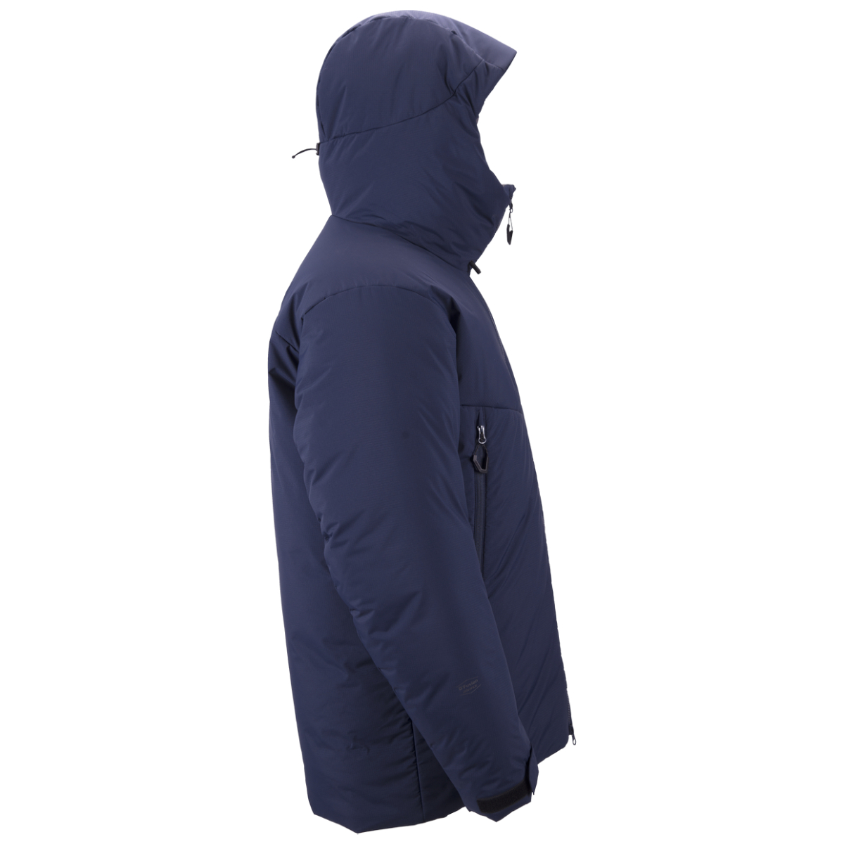 В качестве утеплителя используется качественный гусиный пух SmartDown с коэффициентом Fill Power 750+, который обеспечивает отличную теплоизоляцию. Для уменьшения холодных зон и защиты от влаги по всей поверхности куртки дополнительно применяется гидрофобный синтетический материал SmartLoft, усиливающий теплоэффективность модели.