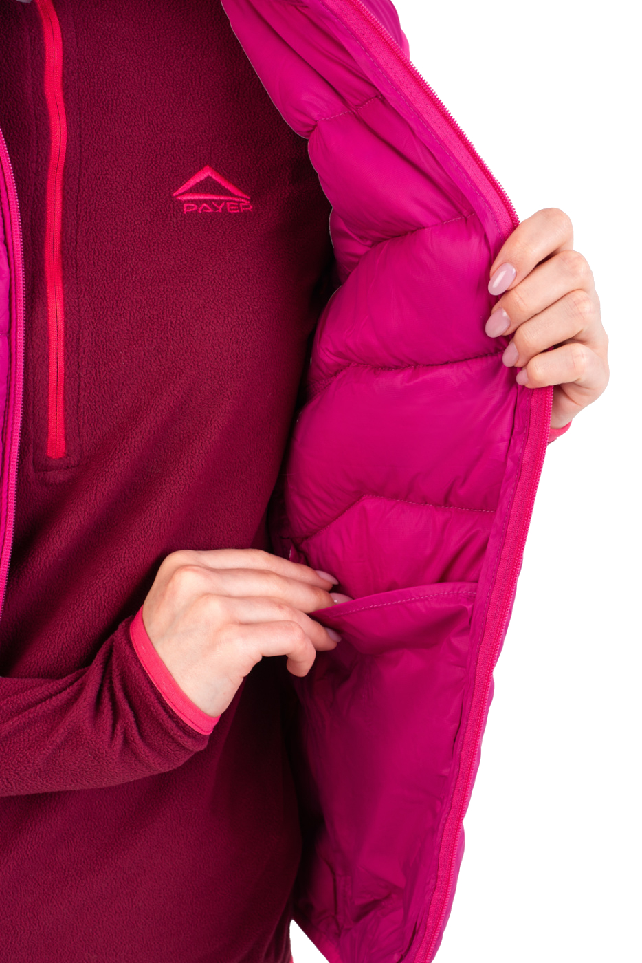 Изготовленный из легкой и прочной нейлоновой ткани с натуральным пуховым наполнителем, этот жилет обеспечивает идеальную теплоизоляцию в прохладную погоду. Его компактный размер позволяет легко взять его с собой в рюкзаке и использовать как самостоятельное изделие или как утепляющий слой под другую одежду.