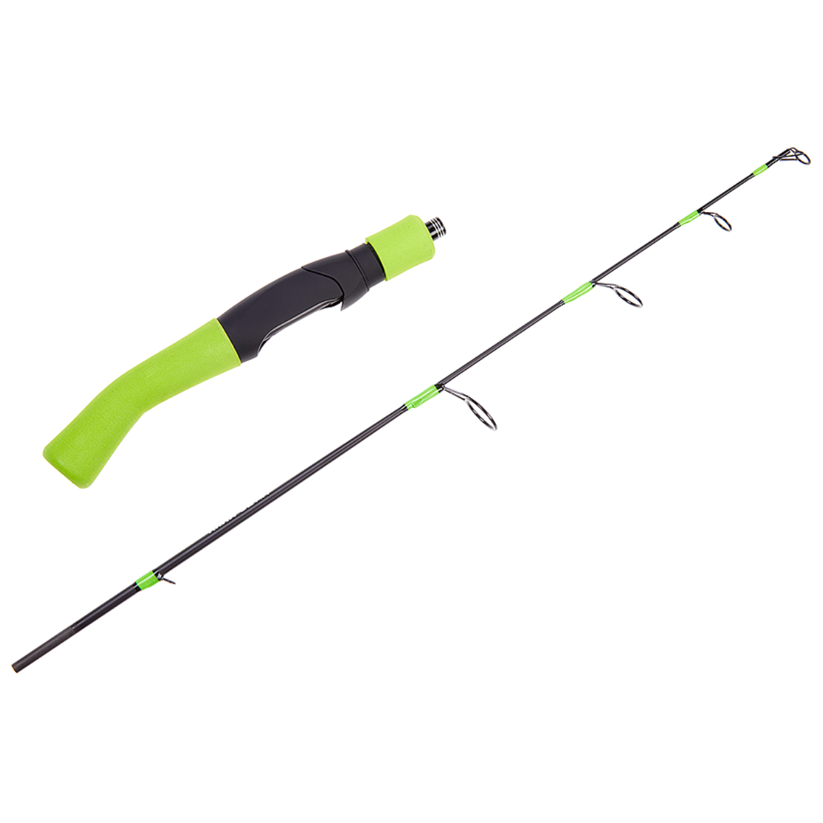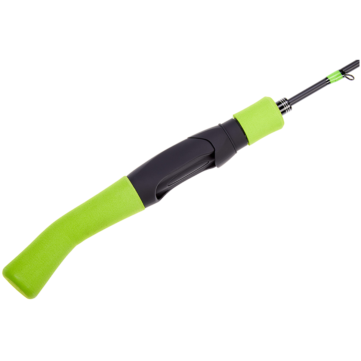 Рукоятка пистолетной формы из теплого материала HARD EVA обеспечивает комфорт даже в холодных условиях. Передняя гайка катушкодержателя добавляет удобства. Ярко-зеленая рукоятка делает удочку легко заметной на снегу и льду, что особенно полезно зимой.
