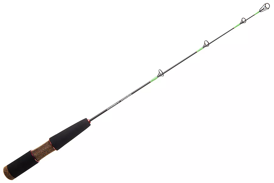 Основное отличие от других моделей – это полуторачастное исполнение, при этом хлыст не вставляется, а выдвигается из ручки. Благодаря такой конструкции, полностью исключается самопроизвольное разъединение хлыста и ручки при вываживании рыбы. Также эта особенность позволяет носить удочку в транспортном положении вместе со снаряженной снастью и катушкой. Большие по диаметру проводочные кольца и тюльпан снижают вероятность их обмерзания. Кольца и тюльпан в данной модели имеют вставки из нержавеющей стали, что допускает (в отличии колец с керамическими вставками) удаление льда с них -постукиванием по твердой поверхности.