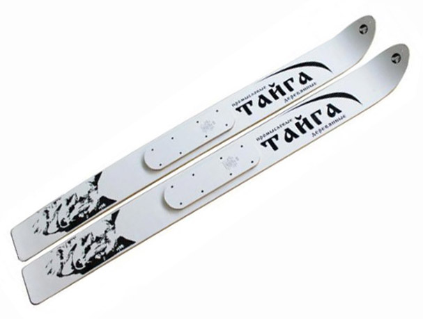В носках лыж просверлены отверстия для использования их в качестве волокуш.