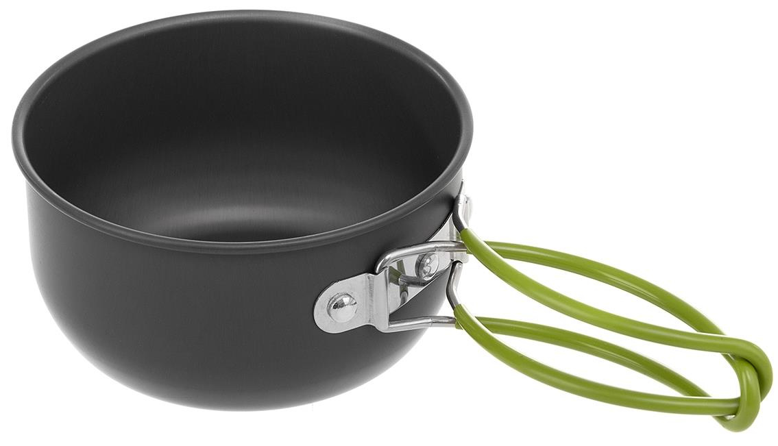 Набор рассчитан на 1-2 человека. Имеет откидные ручки с термоизолирующим покрытием, которые экономят объем при транспортировке, делая использование посуды более комфортным. Набор поставляется с нейлоновым мешочком для транспортировки и хранения.