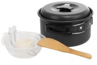 Набор рассчитан на 1-2 человека. Имеет откидные ручки с термоизолирующим покрытием, которые экономят объем при транспортировке, делая использование посуды более комфортным. Набор поставляется с нейлоновым мешочком для транспортировки и хранения.