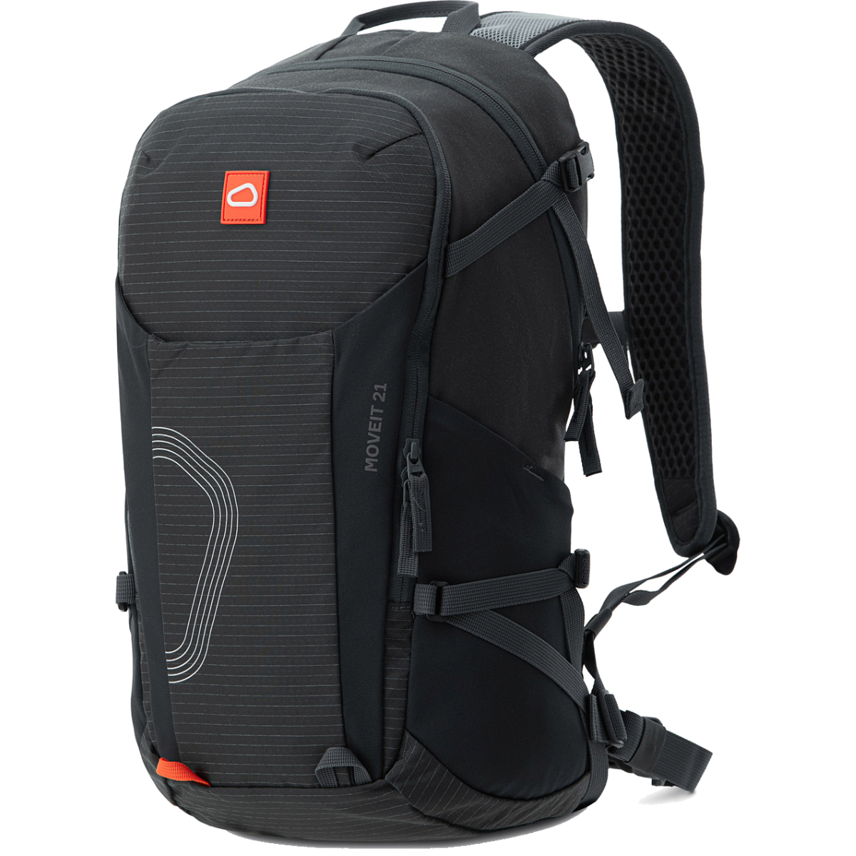 Есть эластичный «кенгуру»-карман для быстрого доступа к одежде, боковые карманы для фляг до 1 л, фасадный карман с органайзером и карабином для ключей. Предусмотрен карман для гидратора с выводом трубки, регулируемая по высоте грудная стяжка и съёмный пояс.